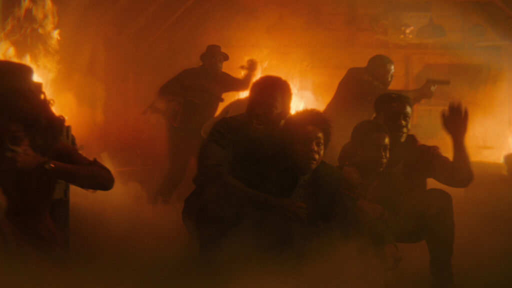 Back to the present, the show picks up right when it left in the previous episode. The Black Spot is raided by masked white men looking for Hank (Stephen Rider). Justice is long forgotten, they want him dead. Of course, the group of black men, military men for many of them, refuses to let their attackers do whatever they want and is ready to retaliate. That is, until Hank surrenders himself under the eyes of his daughter, Ronnie (Amanda Christine). Hank knows it can’t end well, he knows whatever happens, the blame will fall on the black people present, and no justice will save them.