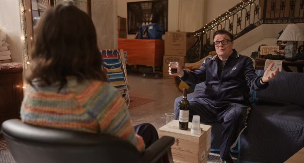 Mabel runs into Teddy Dimas in the lobby (portrayed by the amazing Nathan Lane), he’s back, joyous – out of jail, and she joins him in for a glass of wine. But she’s not joyous. Howard is saddened to discover LESTR has a new adminstrator now.